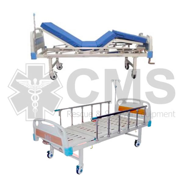 – Esta Cama hospitalaria 2 manivelas está conformada por una plataforma seccionada que permite la inclinación de la espalda y piernas del paciente.