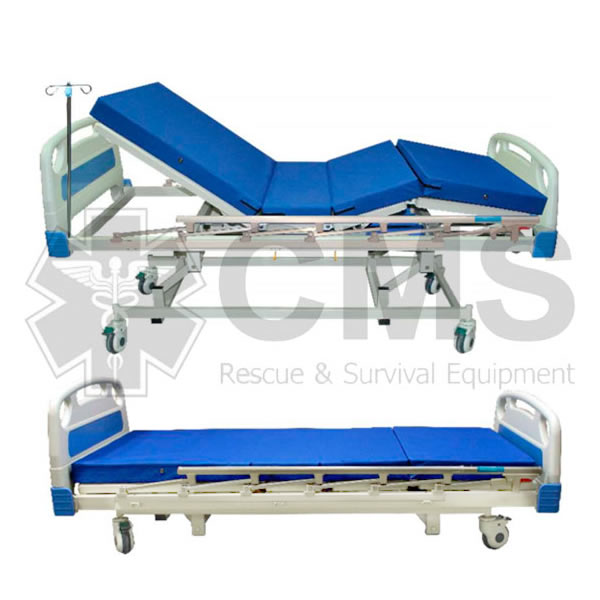 • Sistema de manivela manual de 3 funciones: espaldar, pies, y altura de cama.