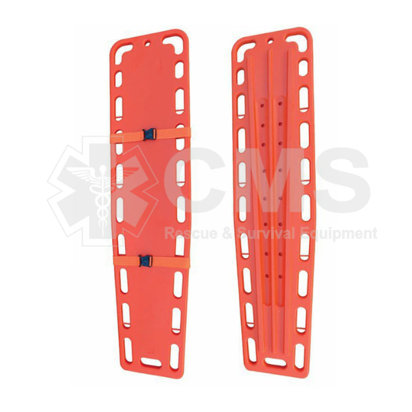 Diseñada para el transporte e inmovilización de pacientes en situaciones de rescate y evacuación. Fabricada a base de Polietileno de Alta Densidad, construido en una sola pieza, con 18 agarraderas y de superficie antideslizante. Impermeable a fluidos corporales, de fácil limpieza y desinfección, capacidad de flotación en el agua. Es adaptable al uso de inmovilizadores de cabeza y correas de seguridad.