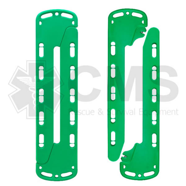 Esta camilla tipo cuchara está fabricado de polietileno plegable compuesta de dos partes independientes con sistema de bloqueo automático de cierre, el pestillo lateral empotrado permite el acoplamiento de ambas partes. Requiere liberación manual al abrir la camilla. Diseñado para el transporte del paciente minimizando los movimientos de la columna y manteniendo alineado el eje longitudinal del cuerpo. Se puede usar como una camilla de cuchara o un tablero completo y como dispositivo de flotación.